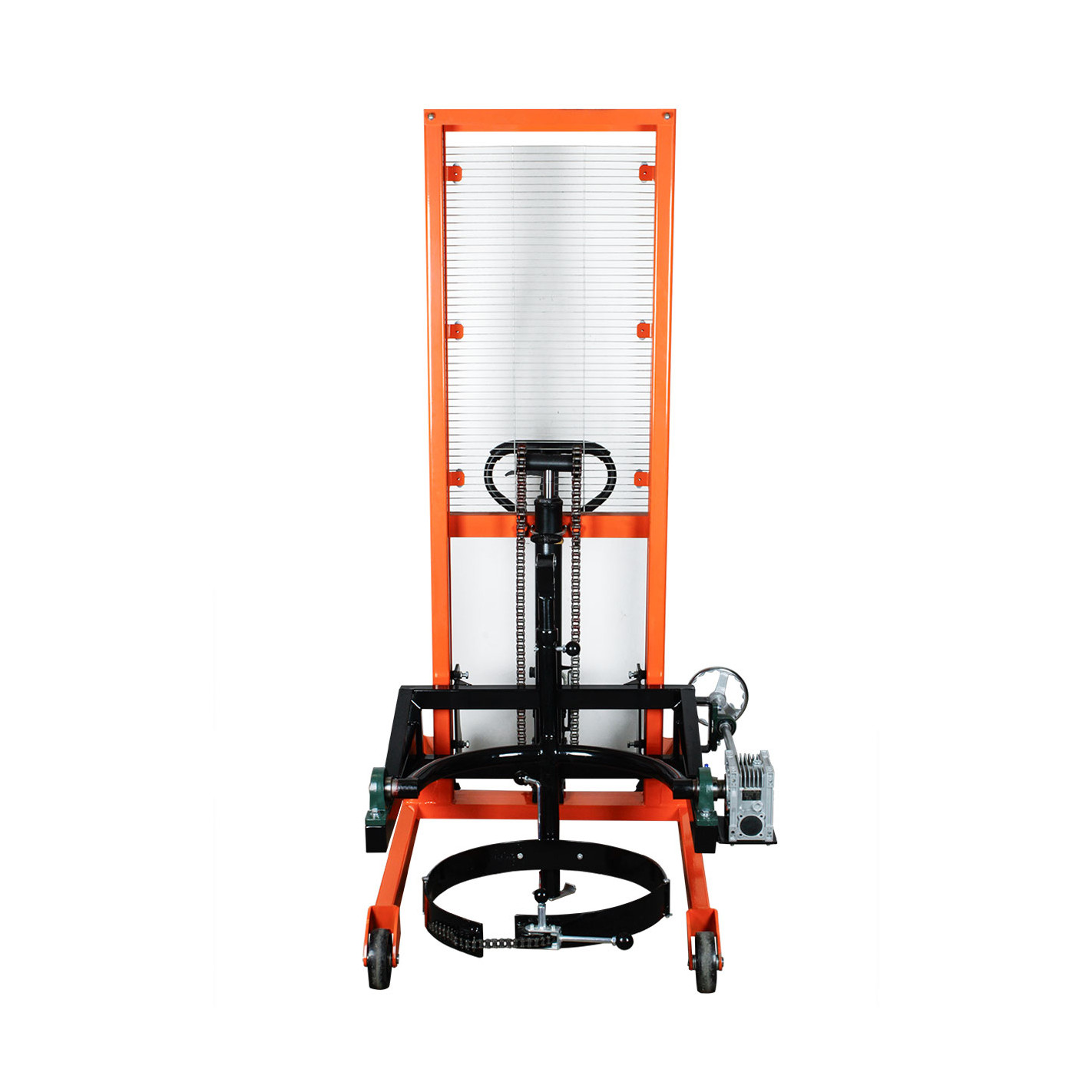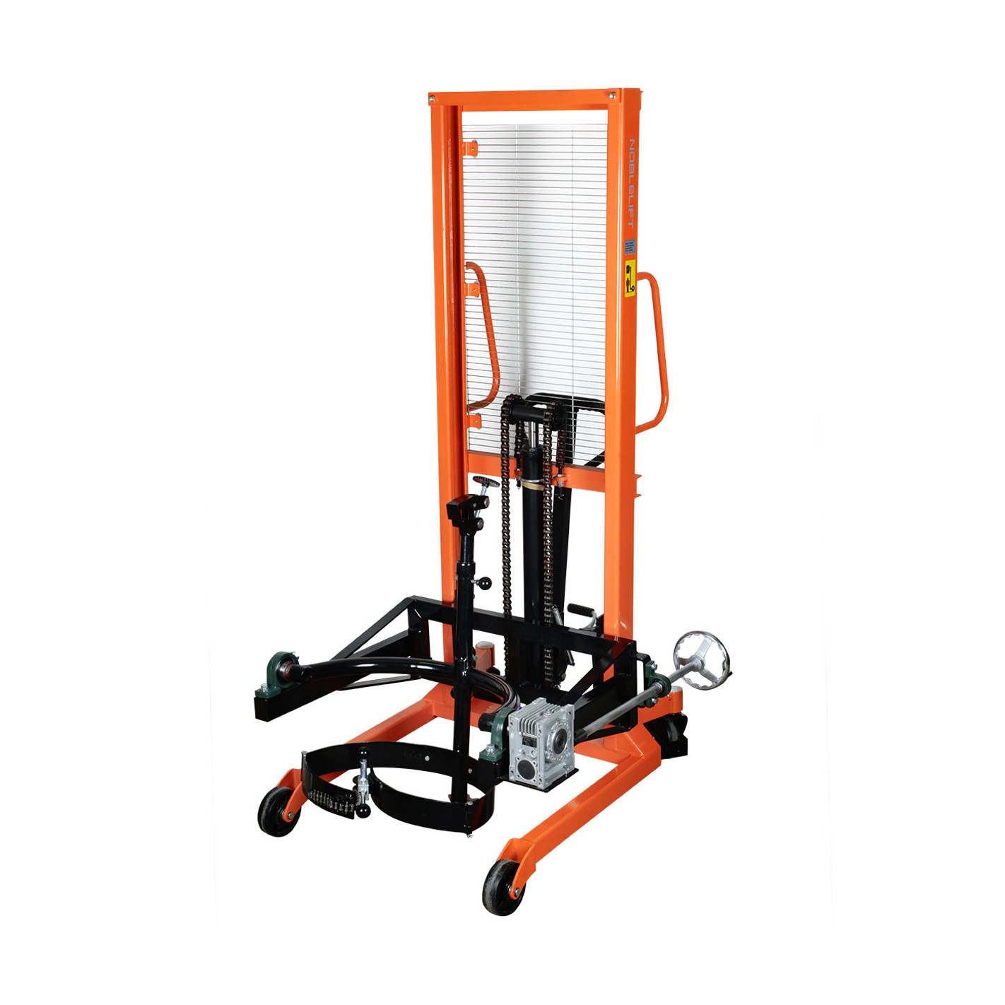 Se desliza fácilmente sobre paletas para cargar o descargar rápidamente tambores de 30 o 55 galones. Agarra los tambores desde el medio de una paleta estándar con una garra de tambor especialmente diseñada. Luego levanta los tambores y los redistribuye por toda la instalación. También extrae los tambores de la esquina de los patines de contención, unidad altamente maniobrable con dos únicas ruedas de poliéster y dos ruedas de polietileno.