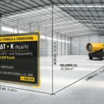 Cuando el volumen en m³ es masivo o se trabaja en condiciones de frío extremo (como minería o construcción), los turbocalefactores a Diésel de 50 KW u 80 KW son la solución definitiva. Su llama de alto poder y su gran capacidad de soplado permiten temperar superficies de hasta 500 m² con un solo equipo, moviendo el aire caliente con la presión necesaria para vencer las corrientes de aire frío.
